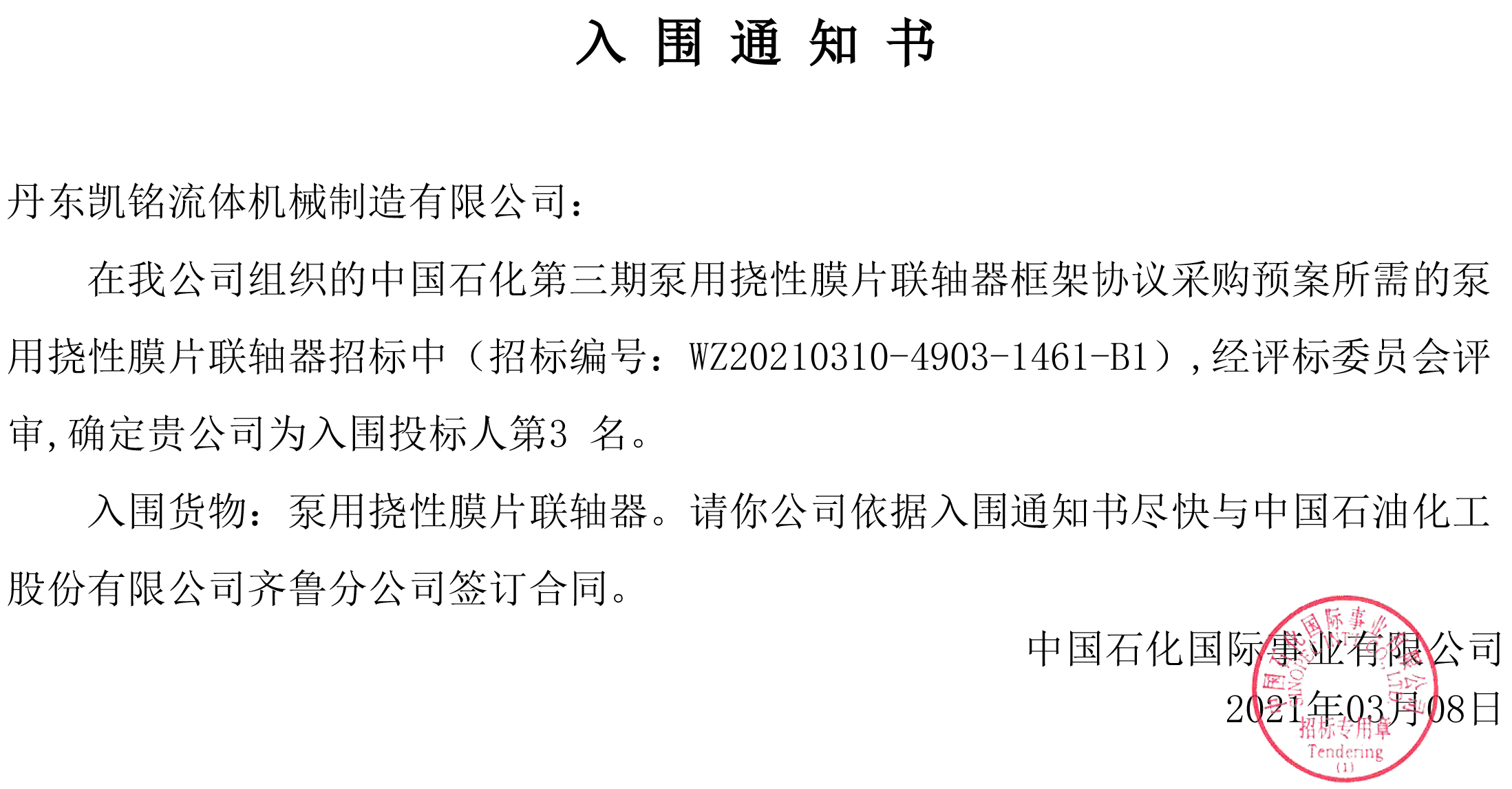 2021年是個生機勃勃,萬象更新,好事不斷的一年!我公司帶著這樣的信念繼續(xù)披荊斬棘,再次成為中國石化第三期泵用撓性膜片聯(lián)軸器的供應(yīng)商。新一年,新開始,新氣象,公司上下,團結(jié)一致,精兵減政,深入管理,為保生產(chǎn)效率,加強產(chǎn)品質(zhì)量,又提出了更高要求,我們不斷嘗試,真抓實干,大膽創(chuàng)新,勇于突破。在新年剛剛開始的時候,就有了這第一份的成績單